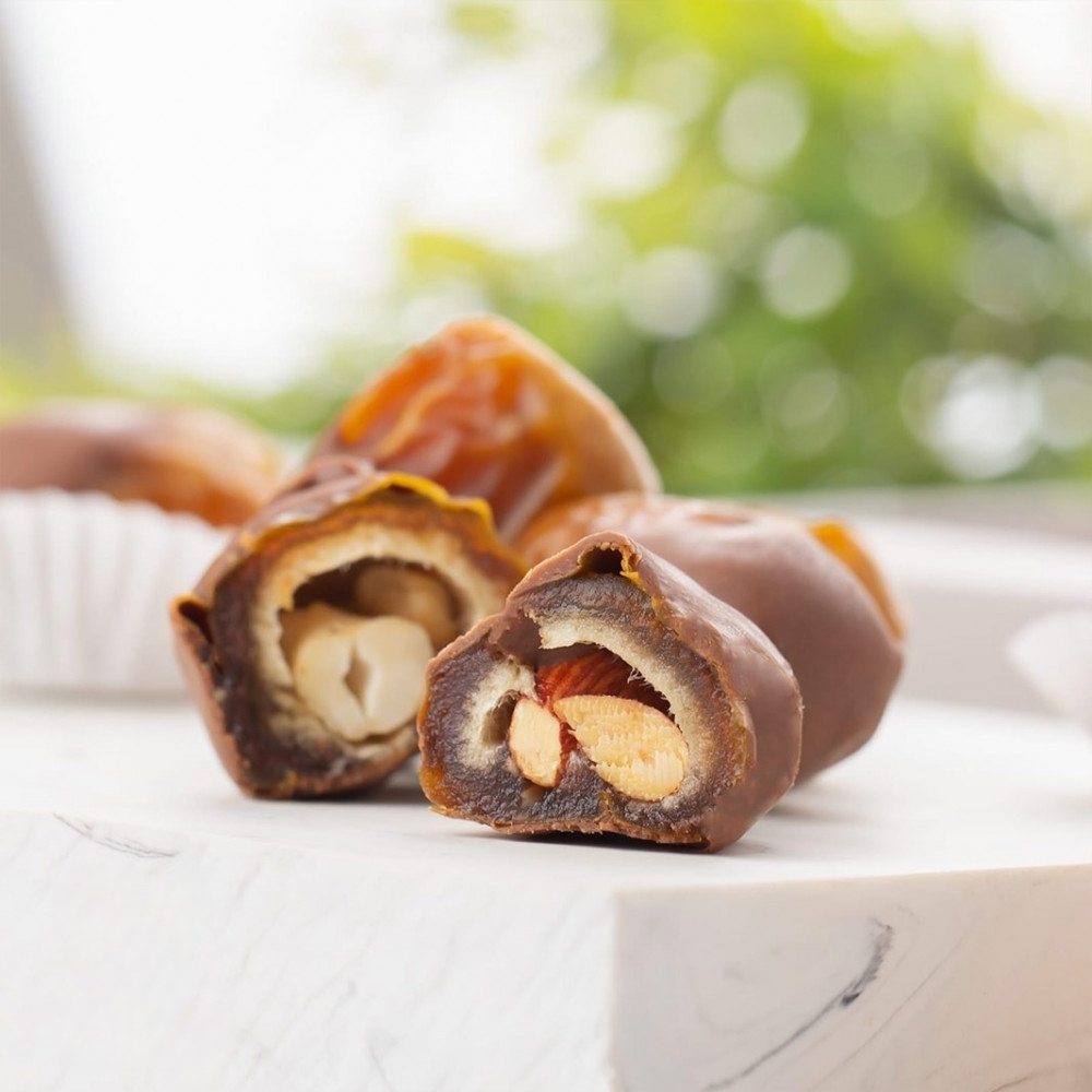 يُعد الدمج بين الشوكولا والتمر والمكسرات من أرقى وأذكى التوليفات